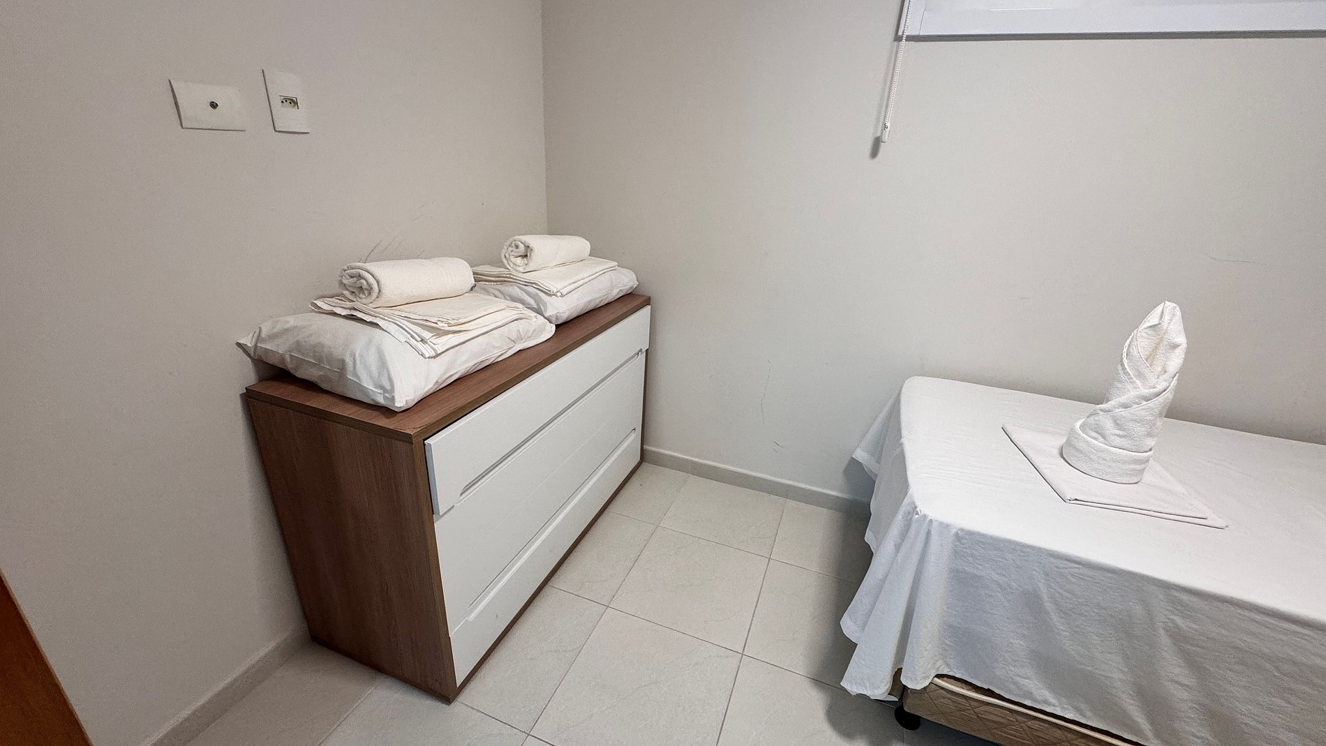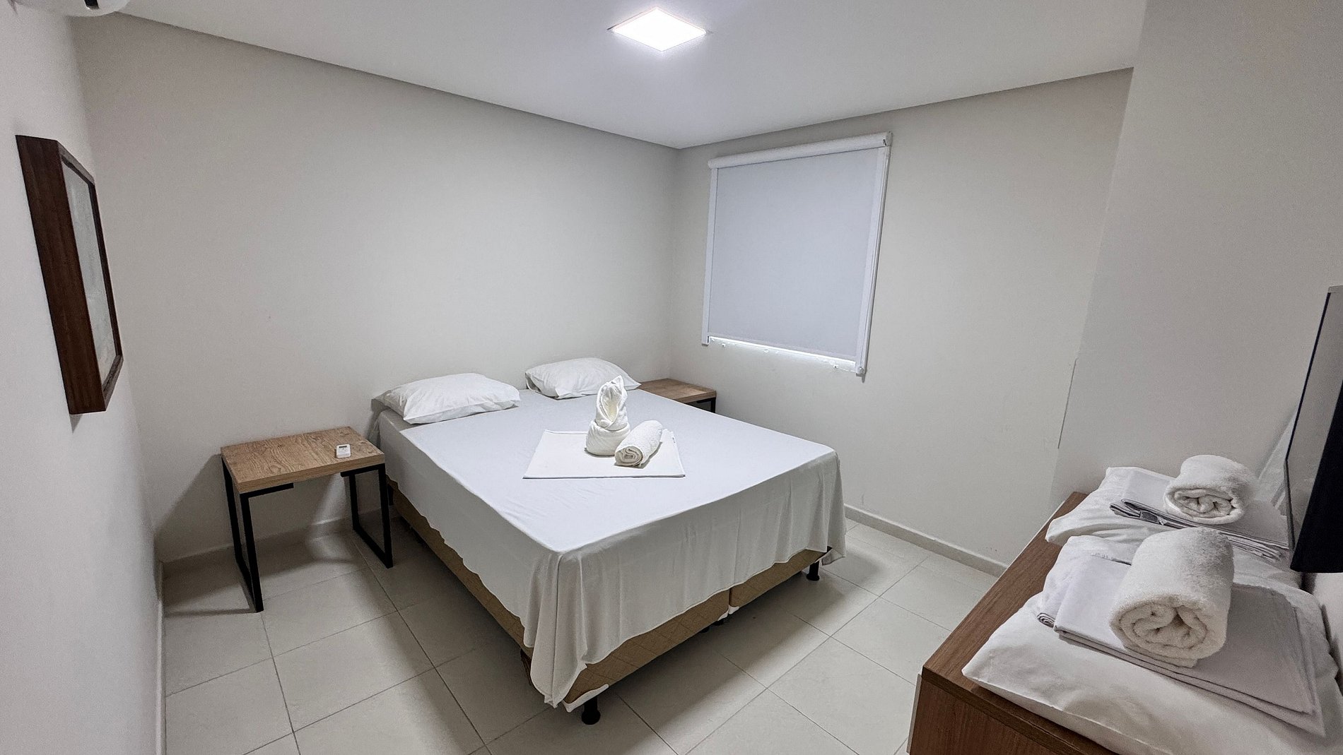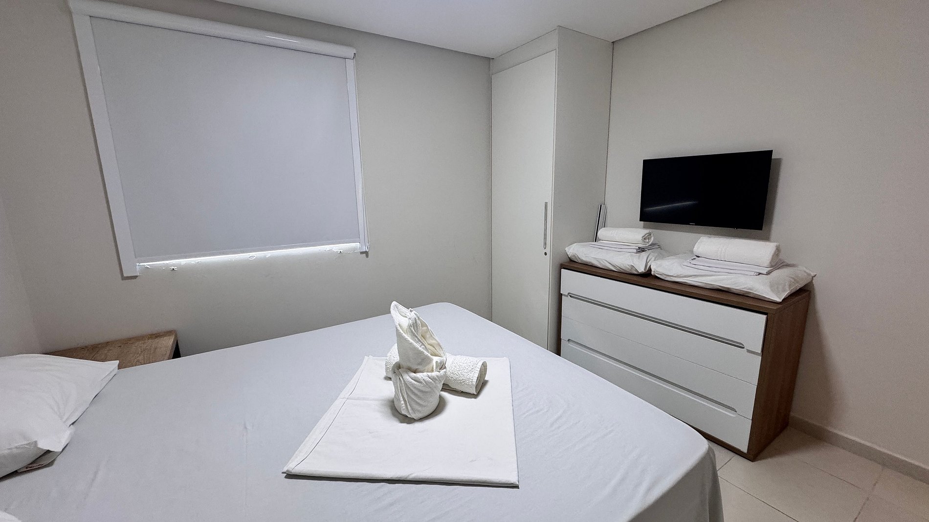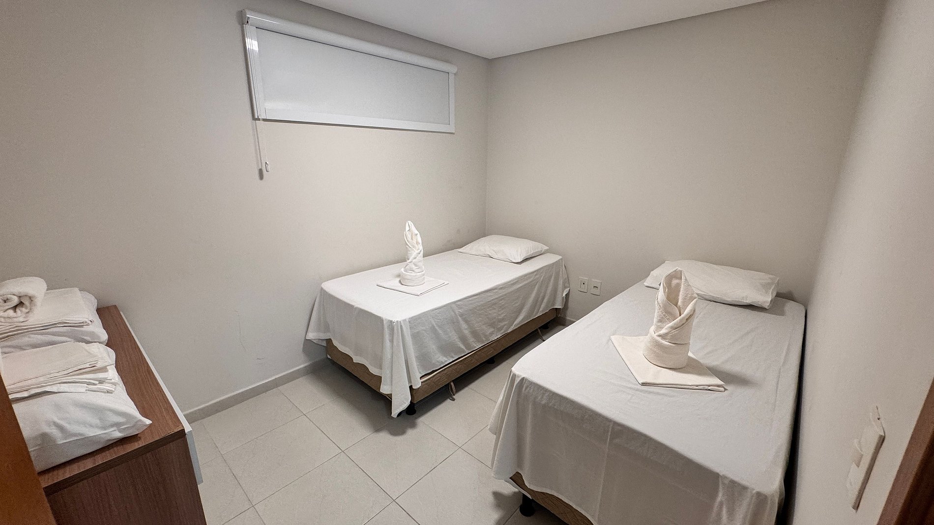Apartamento 2 quartos; acomoda até 8 pessoas confortável. 1º quarto: suíte com cama casal + 2 bicama; 2º quarto: 2 Camas solteiro + 2 bicamas; 1 banheiro social; Ar condicionado split em todos os quartos e sala, TV na sala e na suíte; Cozinha completa: Geladeira, fogão, microondas, liquidificador, sanduicheira; Enxoval completo: lençol, toalha, travesseiros. O apartamento está localizado no Carneiros Beach Resort. Empreendimento com parque aquático, salão de festas, quadra de tênis, quadra poliesportiva, quadra de squash, a beira mar da Praia dos Carneiros, a 900m do Pontal.
